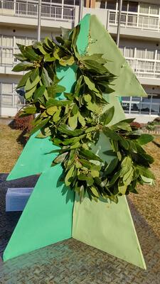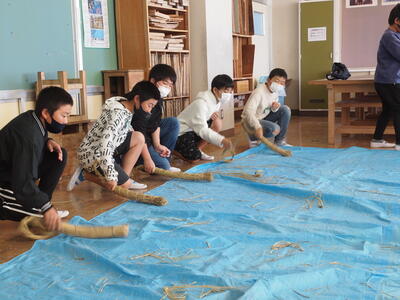 ツルは先日を1年生全員で刈り、リースにしました。大変な作業でしたがみんなで協力して行いました。