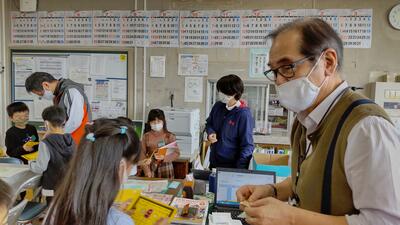 サーマルカメラの前で待っていると、「おはようございます」という元気な声の子どもたちが登校してきました。