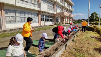 チューリップの球根の植え方や育て方を教えていただいた後 一緒に植え付けをしました。大切に育てて、春には大きな花を咲かせたいと思います。