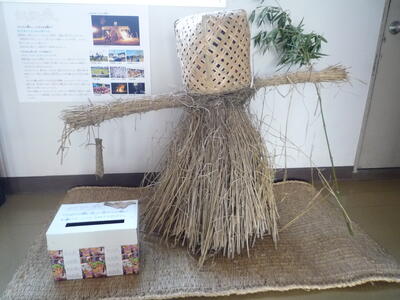 町産業課商工観光係より、「ミニたんたんボッチ」が届きました。「たんたんボッチ」は「わら」で作ったモニュメントで、たんたん祭りのシンボルになっています。「みんなの願いをかなえてくれる田んぼの神様」です。祭りの最後には、「たんたんボッチ」や町の鳥「ヒバリ」の形の「お願い札」(一人一人が願いを書いたもの)に火を付け、無病息災、五穀豊穣を祈るのだそうです。