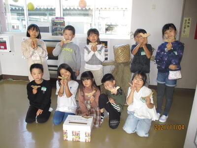 収穫したサツマ芋は、家庭に持ち帰ります。1週間程度天日干しすると甘みが増すようです。焼き芋、天ぷら、大学芋にスイートポテト等、調理方法はたくさんありますが、是非、お子様と一緒に調理してみてはいかがでしょうか。