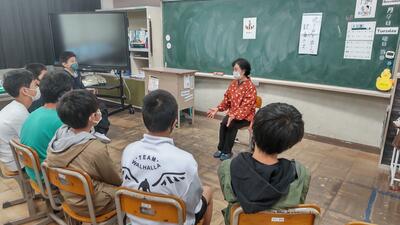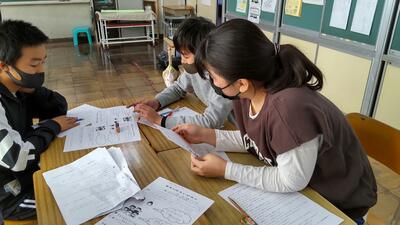 1年生2年生は合同で「学級活動」の授業です。28日の遠足に向けてグループごとにめあてを決めました。