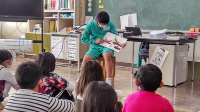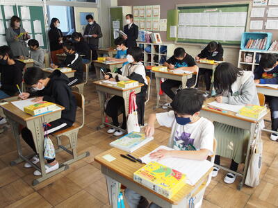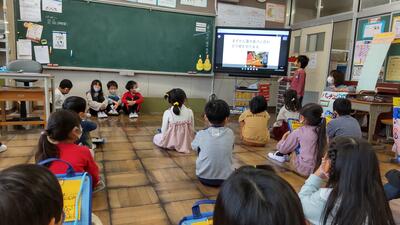 本日は図書ボランティアの皆様においでいただき、朝の活動の時間に読み聞かせを行いました。1年生は「あたしうそついちゃった・つきのわこぐま」2年生3年生は「まちのコウモリ・ガブルくんとコウモリオニ」4年生は「ようこそうみへ・おばあさんのたからもの」5年生は「すずりくん・もりはみている」6年生は「こころとしんごう・おかあさんごめんなさい・さつまのおいも」を読んでいただきました。