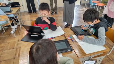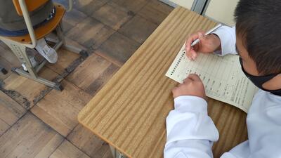 本日の授業では、「自分の考えが伝わるように書き表し方を工夫しよう」という学習課題のもと、下書きを読み合って推敲し書き表し方を工夫しながら清書するという授業を行いました。