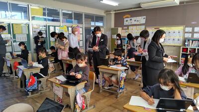 6年生も「学級活動」の時間です。27日の中学校半日体験に向けて各中学校のHPを確認していました。