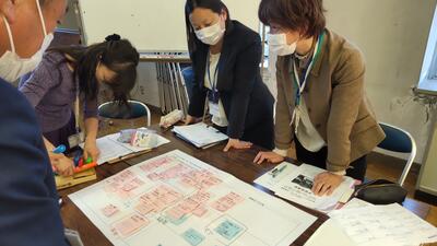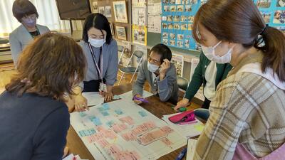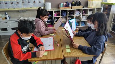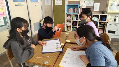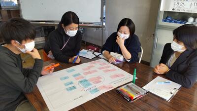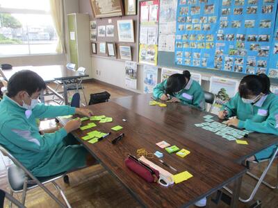 家でこれからやろうとしている仕事を、グループの皆に伝えています。その仕事をするうえでどんな工夫ができるのか、家の人にも教えていただきました。