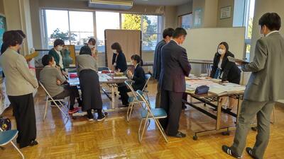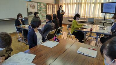 放課後の授業研究会では、目標にせまるための手立てや振り返りに導く発問について、話合いが行われました。