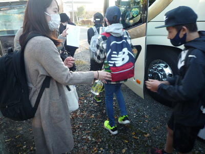 新型コロナウイルス感染症防止の観点から、バスを利用する場合は、乗降の際に手の消毒を行い、バスでの座席間隔を配慮するなど、引き続き対策を行って実施しました。