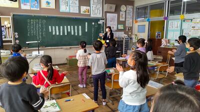 1年生の子どもたちが、町更生保護女性会の皆様と「チューリップ交流会」を行いました。