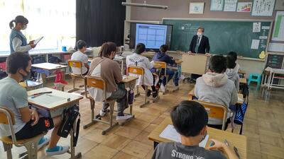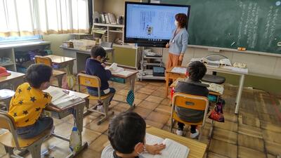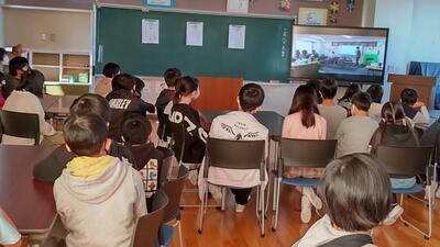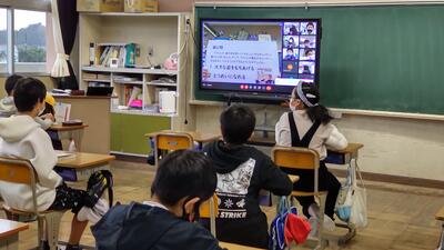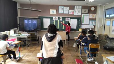 本日の朝の活動は、MEETを活用して表彰朝会を行いました。大きな声で返事ができていました。