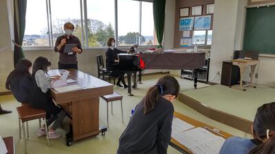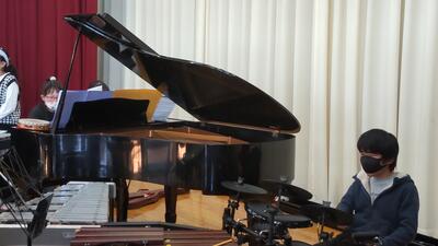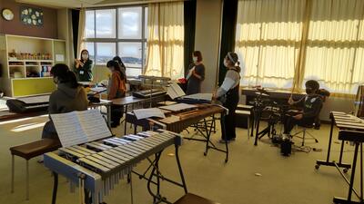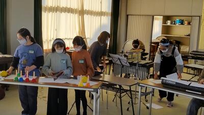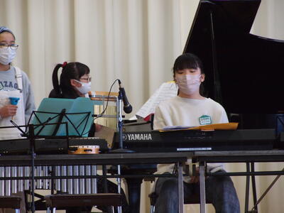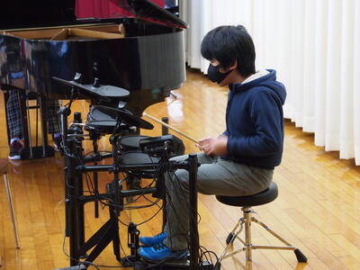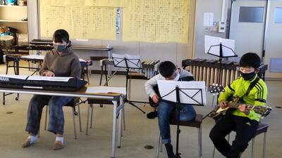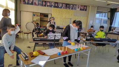 「音楽」です。楽器による音のバランスを話し合います。