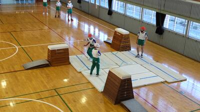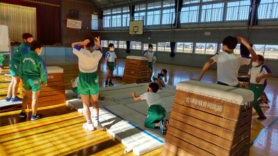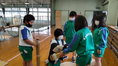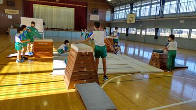 「体育」は、ダンスチームと器械チームに分かれています。フォーメーションを話し合いました。