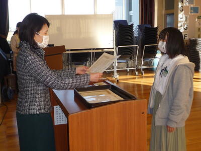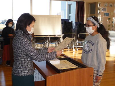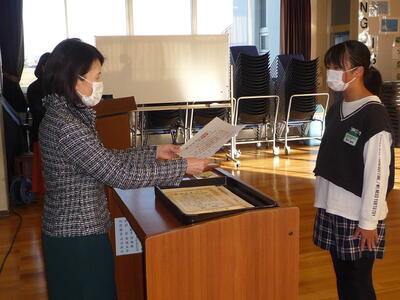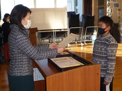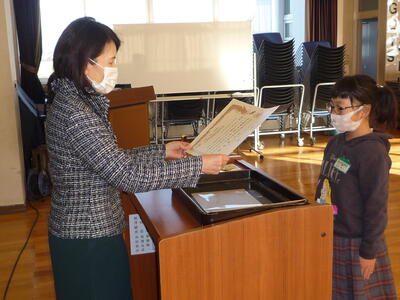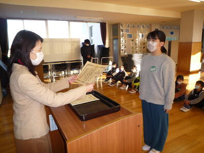 賞状等の伝達後に、冬休みに向けての話を、校長、児童指導主任が行いました。