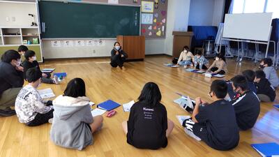 「総合的な学習の時間」での「表現力養成講座」は、発表することではなく、その先にある「ふり返り」を最終目的としています。ふり返ることで、これからの自分自身に「表現力養成講座」をどういかしていくのかが大切になります。本日は、2・3校時に活動を行いましたが、どの講座も全員で話し合う場面が多くみられました。「発表」を意識しているわけではありませんので、一人一人が正面に登場して表現したり、その時間を意識したりすることはありません。それぞれの講座で自分の想いを皆に伝え、作り上げていきます。