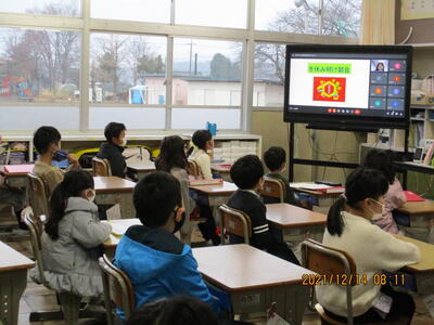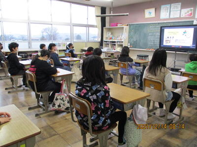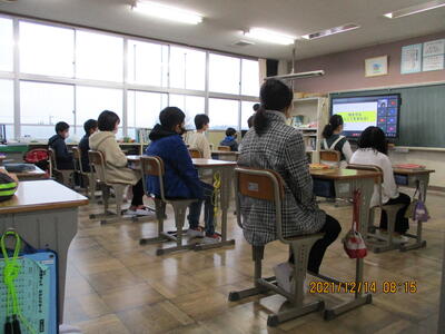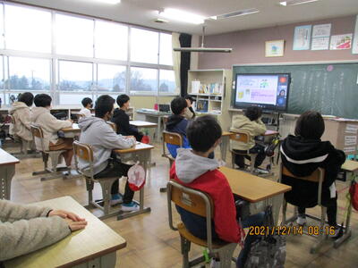 朝の活動の時間を利用して、「冬休み前朝会」をMEETで行いました。