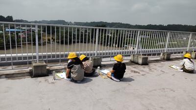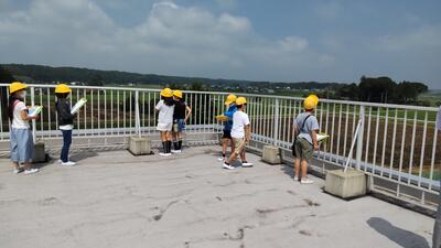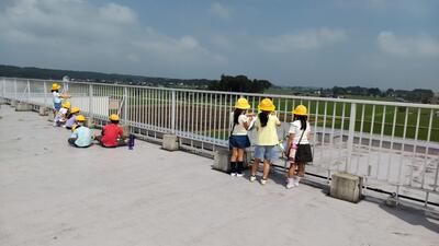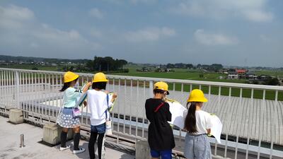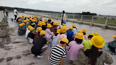 阿久津小学校の3年生の皆さんが来てくださいました。上高根沢小学校の屋上からはどんなものを見つけられたでしょうか。