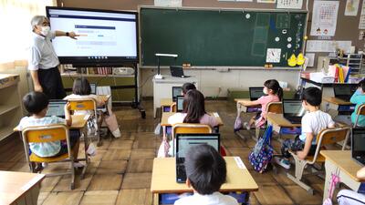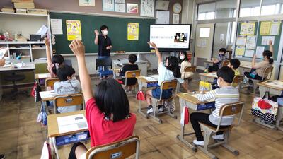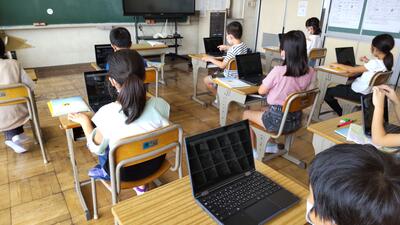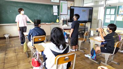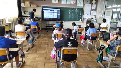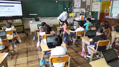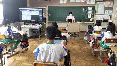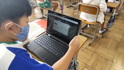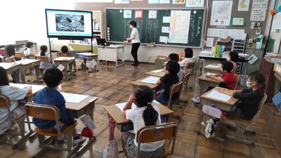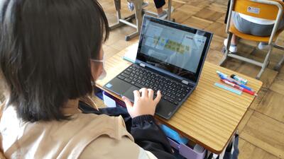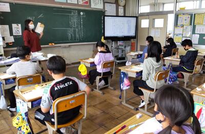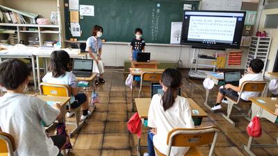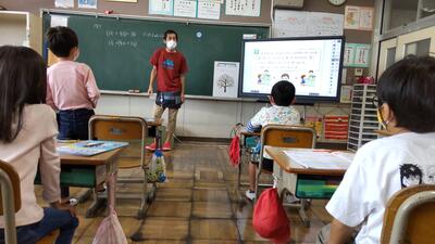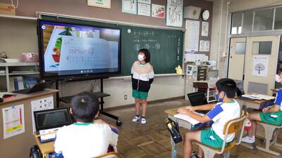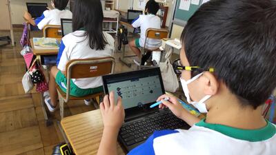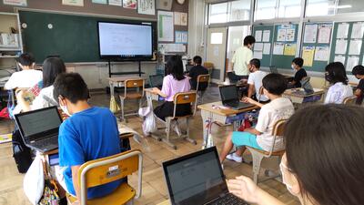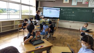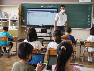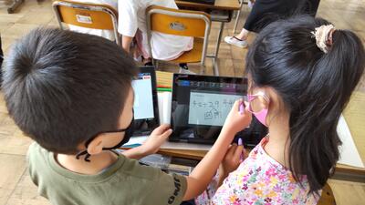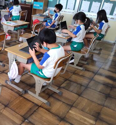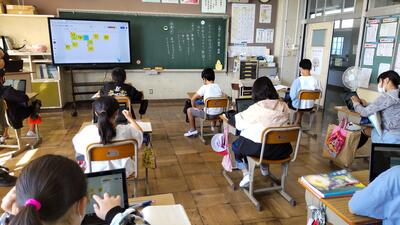 GIGAスクール構想により、児童一人一台のタブレットが配備され、授業での活用が開始されました。