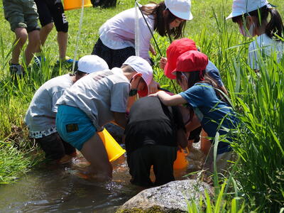 4年生は、春とくらべて生き物の様子がどのように変わっているのかを観察しています。