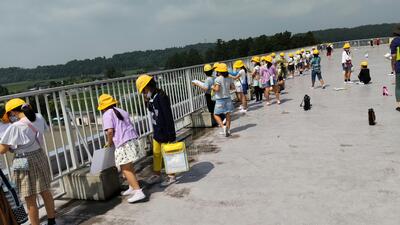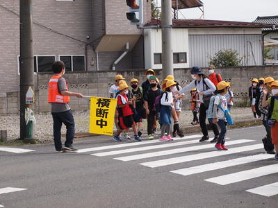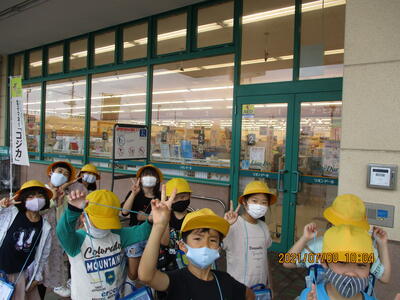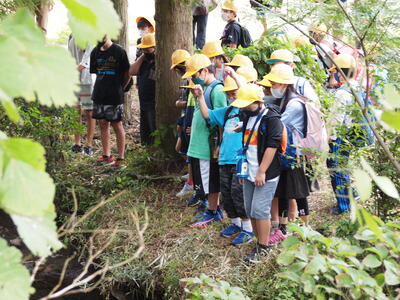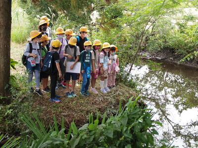 1年生が学校周辺の探検に出かけました。通学路を歩きながらいろいろなものを見つけました。