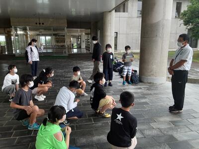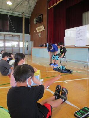 全校一斉に「新体力テスト」を実施しました。まず、体育館に集合して注意事項の確認です。熱中症、新型コロナウィルス感染症に、十分配慮した上での活動です。