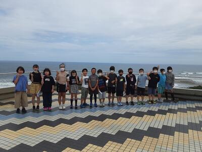とちぎ海浜自然の家に到着しました。テレビドラマでお馴染みになった階段でさっそく記念撮影です。