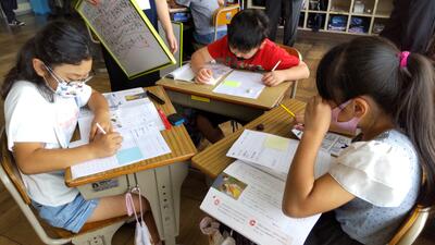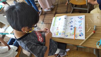 1年生は「国語」の授業です。たくさんの文字をノートに書くことができるようになりました。