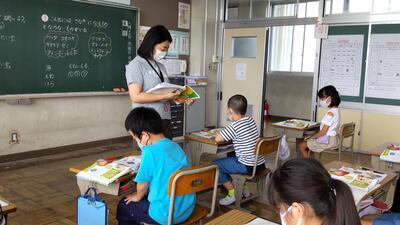 教育相談を行う子どもたち以外は教室で読書をして過ごします。(1・2年生は学校図書事務の菊地美穂先生が読み聞かせをしてくださいます。)