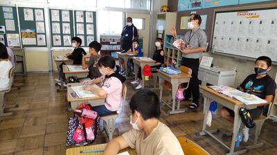 氏家税務署の 川中子実 様、中澤佑太 様を講師にお迎えして、6年生が租税教室を行いました。まず始めに、私達の生活に係るどんな施設が税金でできているのかのクイズに答えました。税金の役割や税金が自分たちの生活を支えていることなど、分かりやすく説明をしてくださいました。これからの学習に役立てていきます。