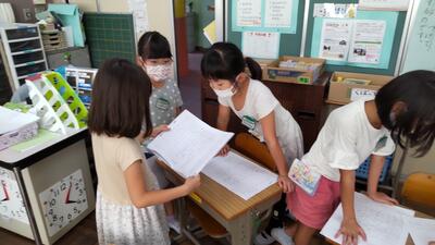 2年生は、町たんけんで見つけたものを家の人に伝えるために、まず友達に伝えているようです。