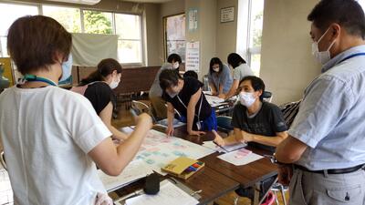 3年生は、町内めぐりで調べた町の様子を地図に書き表しています。