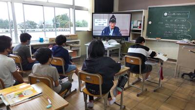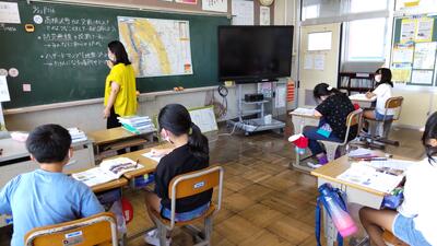 6年生は、「社会科」の授業です。鎌倉時代、元との戦いについて学習しています。「NHK for school」も効果的に活用しています。