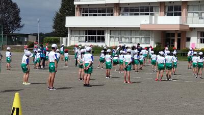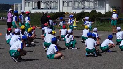 いよいよ、運動会に向けての練習が始まりました。4・5・6年生は紅白リレーの練習です。バトンパスのしかたも組ごとに確認しました。