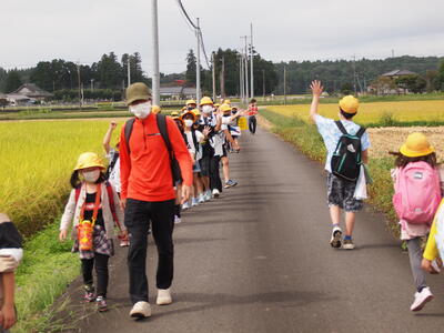 ふれあい班(異学年の縦割り班)ごとに分かれての行動ですが、上級生が下級生をよくリードし、事前に各班で決めた約束を守って協力し合い、楽しく活動することができました。自分たちが通っている学校の周りや地域を知り、「地域を愛する心」を育てることもこの遠足のねらいの一つです。このふれあい遠足で、上高地区の良さを知るきっかけにもなりました。