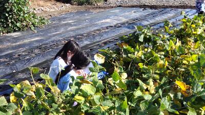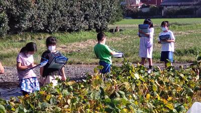 3年生「総合的な学習の時間」です。大豆の観察をしました。収穫も間近となりました。