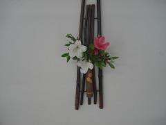 正面玄関と職員室前の廊下壁面にお花を飾りました。