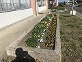校舎前花壇では、キンギョソウ、スノーポール、パンジー、ビオラが満開です。