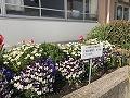 ベゴニア、サイネリアの花鉢を、職員室玄関で大切に育ててきました。