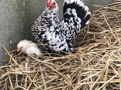 チャボのヒナも元気に育っています。少しずつですが、黒い斑点が目立つようになりました。