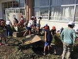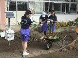 校庭の除草作業、樹木の剪定、幅跳び用砂場及び低学年用砂場の手入れ等、多岐にわたる作業を行ってもらいましたが、作業前と作業後では見違えるほどの違いがあり、学校がきれいになりました。お忙しい中奉仕作業に参加していただいた保護者の皆様ありがとうございました。