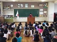 現在、英語month月間です。その活動の一環として、本日、本町在住の岡本多香子による英語の読み聞かせを昼休みを利用して行いました。図書館で行いましたが、児童は楽しそうに聞いていました。英語は楽しみながら学ぶことが大切だといわれています。なななか難しいと思いますが、このような活動を取り入れていきたいと考えています。