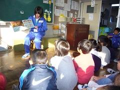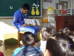 今日がマイ・チャレンジ事業最終日です。朝の活動で1・2年生対象に読み聞かせを行いました。とても上手だったので、思わず身を乗り出してしまう児童もいました。
