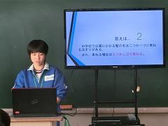 3校時に6年生対象に中学校紹介の授業を行いました。校舎や生徒数、部活動などに関してクイズ形式で説明があった後、中学生だけが知っている「北高根沢中あるある」の説明がありました。最後に質問コーナーがあり、6年生からのたくさんの質問に対して中学生が的確に答えていました。中学校進学への不安がかなり解消されました。