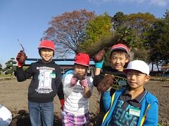 1・2年生が学校農園で育てているさつまいもの収穫を行いました。例年になく大きなさつまいもがたくさん収穫でき、大喜びでした。
