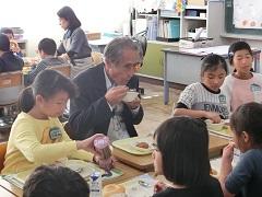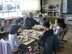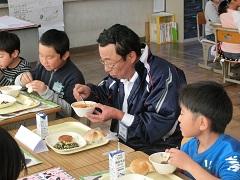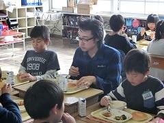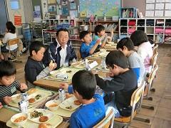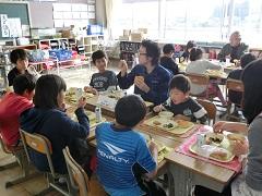 給食の食材の生産者が来校し3・4年生とふれあい給食を行いました。今回来校された方々は、ねぎ・じゃがいも・さつまいも・梨などを栽培しています。子どもたちは、一緒に給食を食べながらたくさんの質問をしていました。