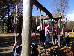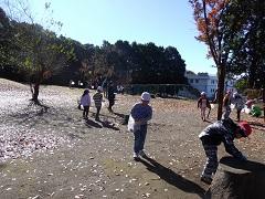 1・2年生が校外学習でかしの森公園に行ってきました。さわやかな天気になり、深まりゆく秋を満喫しました。紅葉したもみじの葉っぱやどんぐりなどをたくさん拾いました。その後、遊具で楽しく遊びました。
