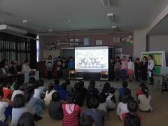 5年生は「理科クイズ」です。メダカや微生物、生き物の卵について自分たちで考えたクイズを出し、全校生で答えました。マニアックな問題もあり、とても工夫され出題でした。