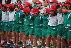 午後は1~3年生の「おどる玉入れ」、4~6年生の「OH!玉RUN」と団体種目が続きます。午前中は赤白同点で終了しました。