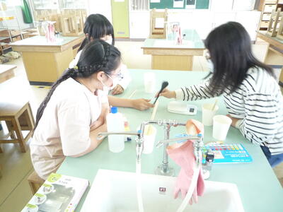 今年度のクラブは、4~6年生が、「アート・クラフトクラブ」、「パソコン・サイエンスクラブ」、「スポーツクラブ」のいずれかに所属して活動します。今日の活動は、それぞれ「ストーンアート」、「スライム作り」、「ドッジボール」です。学年の枠を超え、みんな楽しく活動しています。