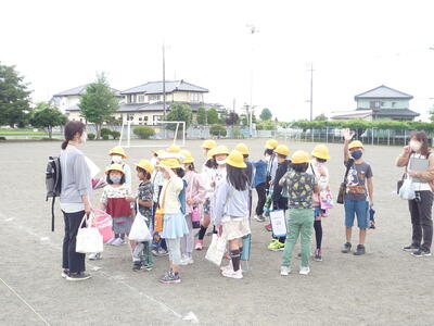 天気が心配されましたが、「ふれあい遠足」を実施しました。全校生が校外で活動する貴重な体験ができました。御協力いただきました浄蓮寺様、安住神社様、上高根沢分館様、たいへんありがとうございました。また、子ども達の安全確保のために一緒に歩いてくださったPTAの皆様にもお礼申し上げます。保護者の皆様には、子ども達の体調管理やカッパ、おやつの準備など、御配慮いただきありがとうございました。今日から3日間、マイチャレンジ(職業体験)が始まりましたが、北高根沢中学校2年生4名(本校卒業生)にも早速一緒に歩いてもらいました。お疲れさまでした。