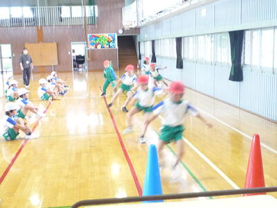 ちょうど1カ月後、10月21日(土)の運動会に向けて、少しずつ準備や練習が進められています。本格的に練習や準備が始まるのは来週からですが、各学年での練習が始まっています。写真は、1年生のリレーの練習の様子です。去年の今頃は、各幼稚園や保育所で運動会の練習をしていたことと思います。入学してから約半年、1年生は体も心も大きく成長しています。